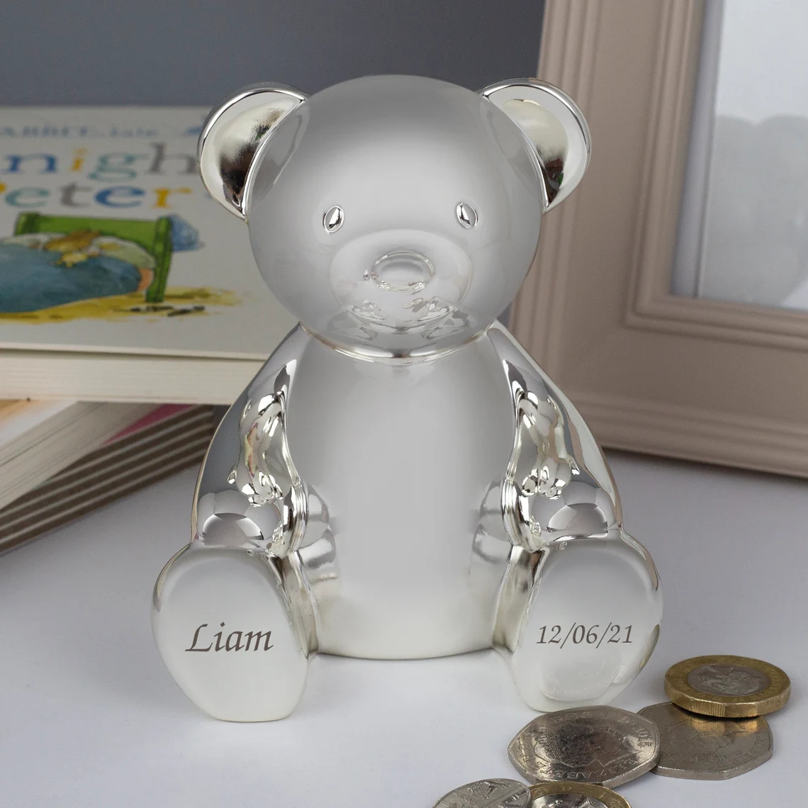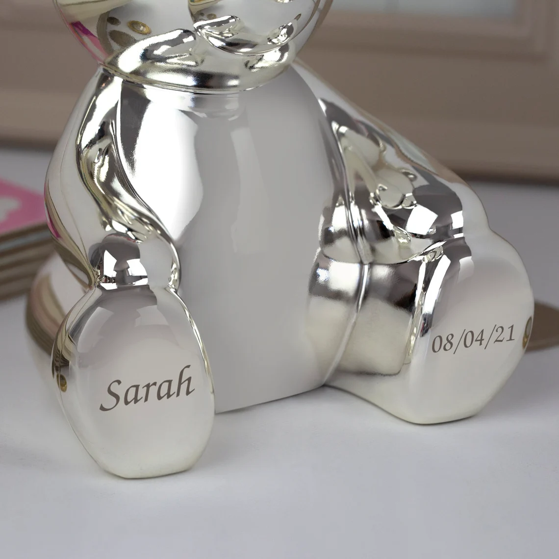 Personalised Silver Rabbit Piggy Money Box For Boys Christening New Baby Gifts Ideas Boxes Girls Presents Born Babies Keepsakes